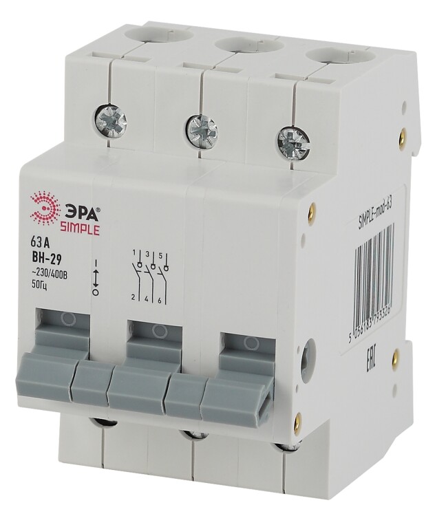 SIMPLE-mod-66 ЭРА SIMPLE Выключатель нагрузки 3P 63А ВН-29 (4/60/1200)