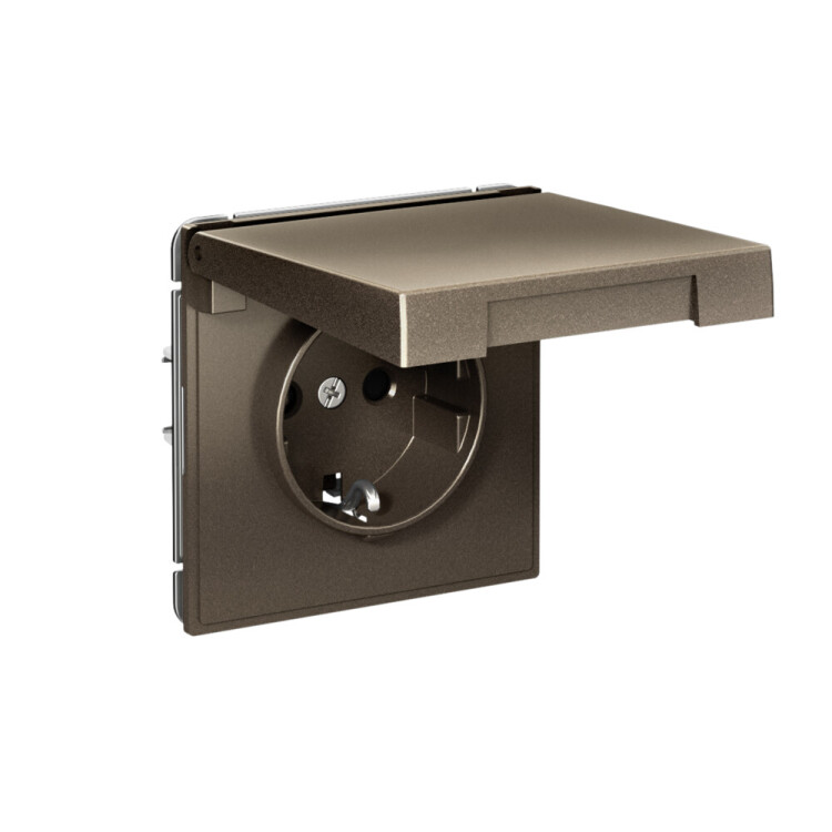 Розетка 2P+E с крышкой со шторками 16А быстрозажим. клеммы мокко ArtGallery