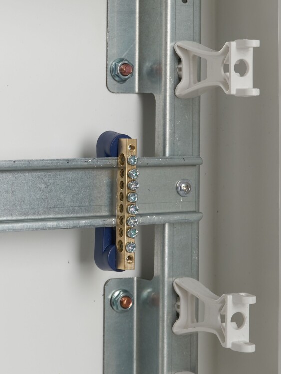 Шина N "ноль" 6х9мм 8 отв. синий на двух угл.изоляторах