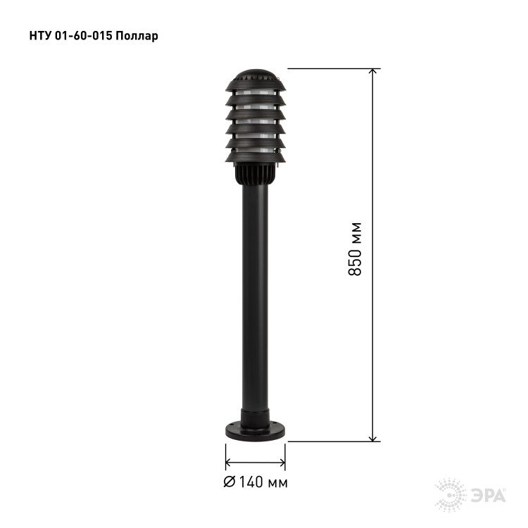 Садово-парковый светильник ЭРА НТУ 01-60-015 Поллар напольный черный IP54 Е27 max60Вт h850мм