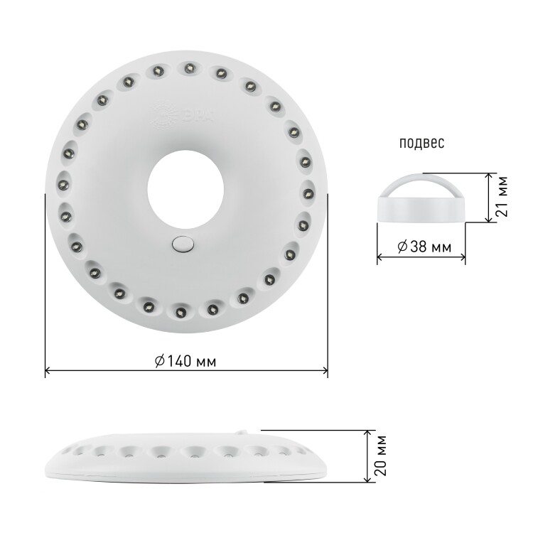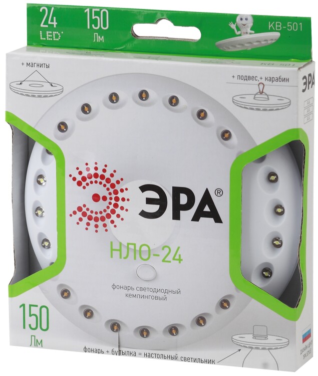 Фонарь кемпинговый светодиодный ЭРА KB-501 НЛО на батарейках с магнитом и карабином походный яркий светильник