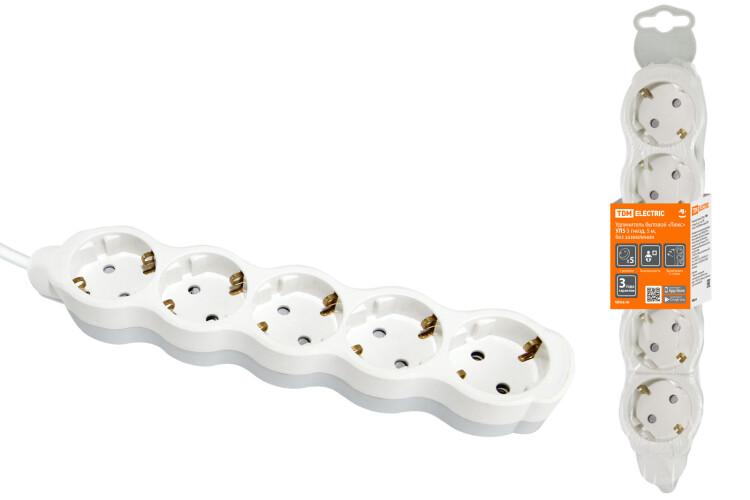 Удлинитель бытовой "Люкс" УЛ05 5 гнезд, 5м, с/з, с з/ш, ПВС 3х1мм2 16А/250В бело-серый TDM