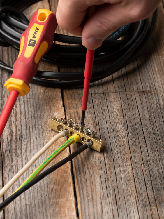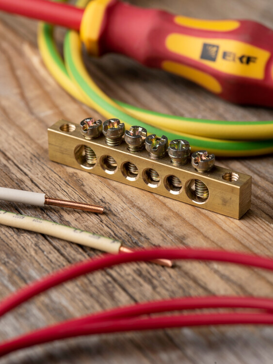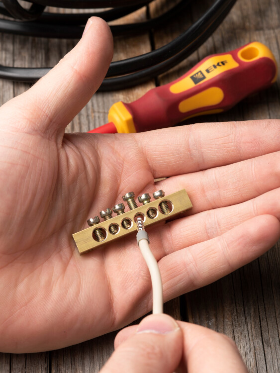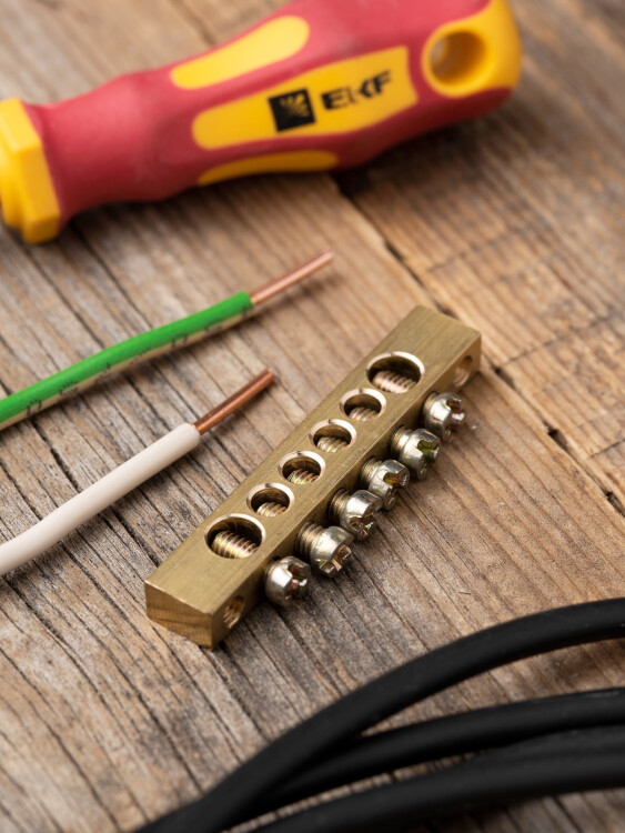 Шина PEN "ноль-земля" (6x9мм) 6 отв. латунь крепеж по краям EKF