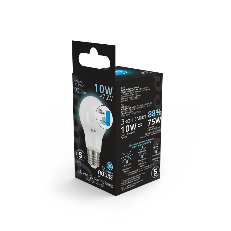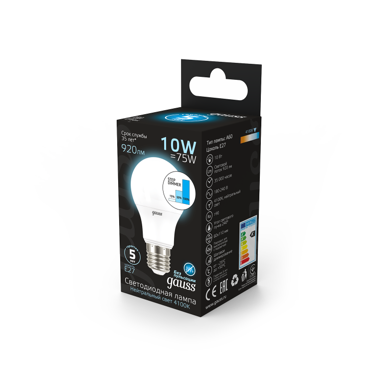 Лампа светодиодная 10 Вт 230В E27 A60-пошаговое диммирование холодный 4100K