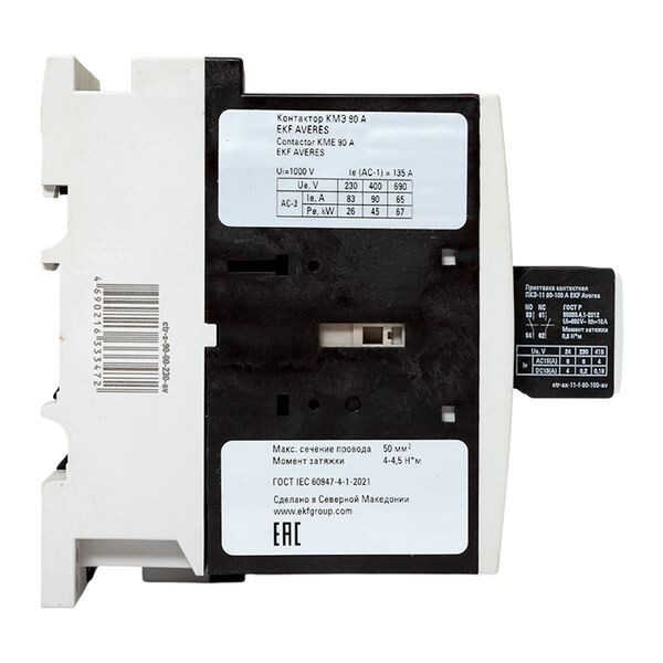 Комплект КМЭ 90А 230В АС с дополнительными контактами 1НО+1НЗ EKF AVERES
