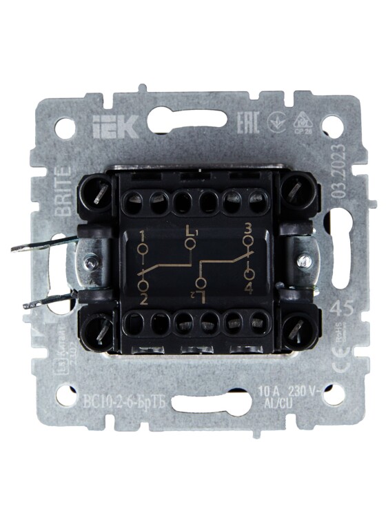 Переключатель 2 клавишный проходной 10А ВС10-2-6-БрТБ темная бронза BRITE