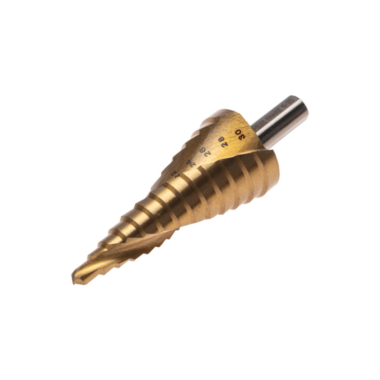 Сверло ступенчатое, 6-8-10-12-14-16-18-20-22-24-26-28-30мм, Р6М5, ТИТАН, треxгр.xвостовик KRANZ