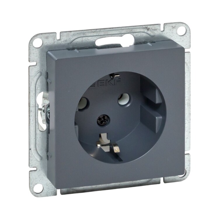 Механизм розетки, 16А, с заземлением, без шторок, графит Эпика EKF