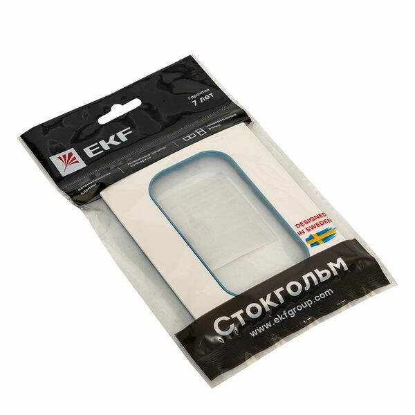 Стокгольм Рамка для розетки 2-местная белая с линией цвета синий EKF PROxima