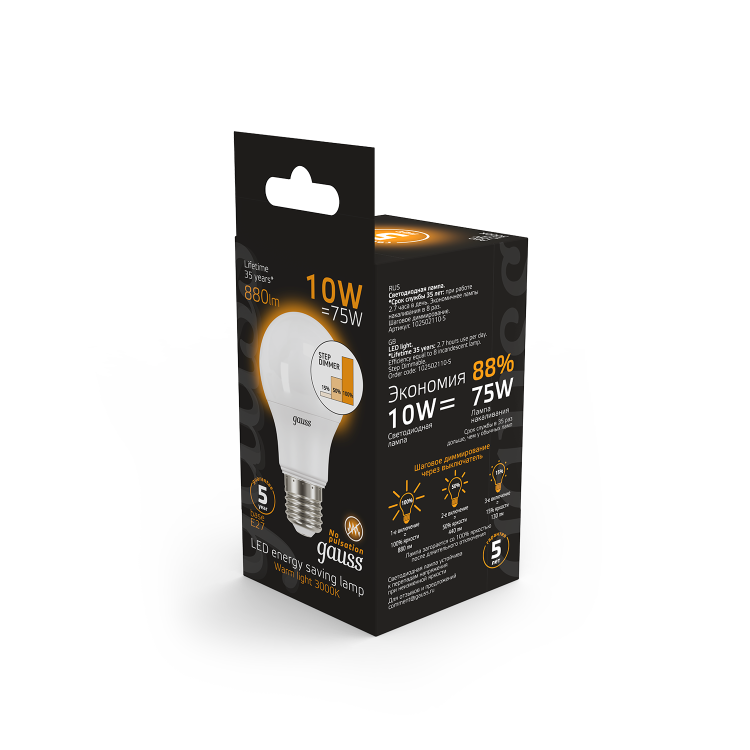 Лампа светодиодная 10 Вт 230В E27 A60-пошаговое диммирование тёплый 3000K