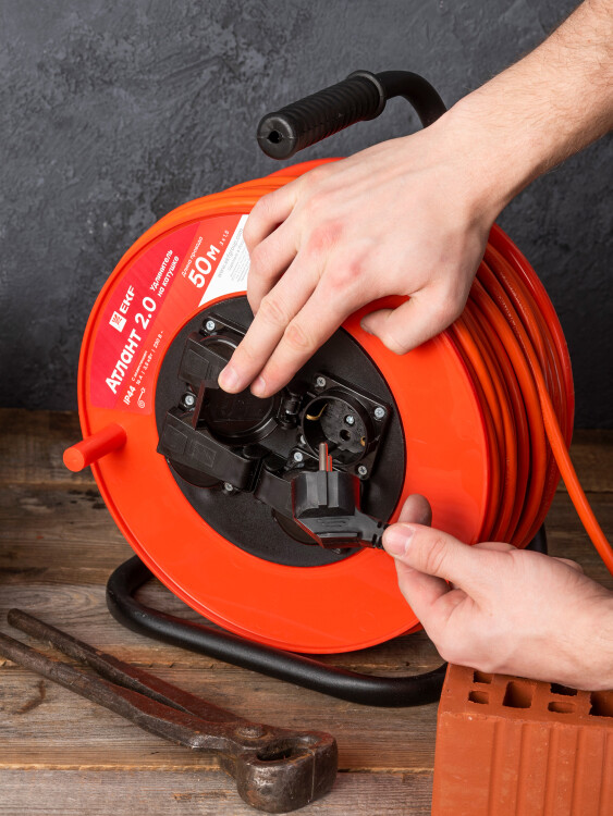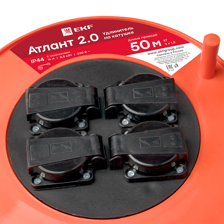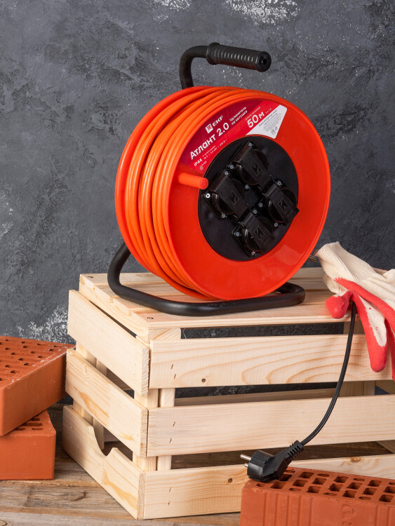 Удлинитель на катушке "Атлант 2.0" 4 гнезда 50м с заземлением КГ 3*1,5 16А/3,5кВт IP44 PROxima EKF