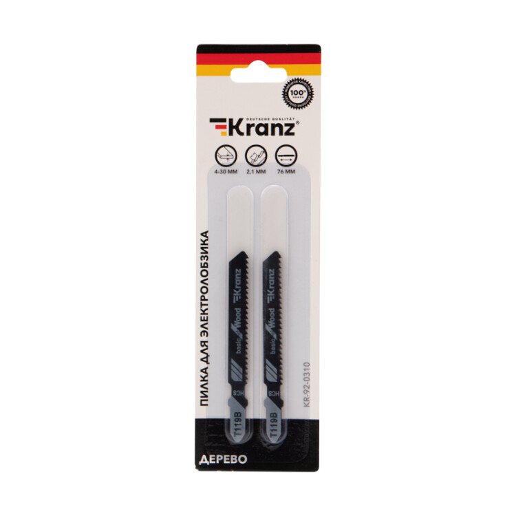 Пилка для электролобзика по дереву T119B 76 мм 12 зубьев на дюйм 4-30 мм (2 шт./уп.) Kranz