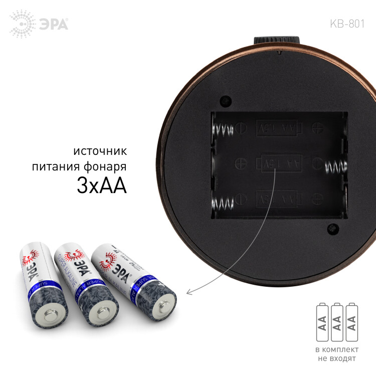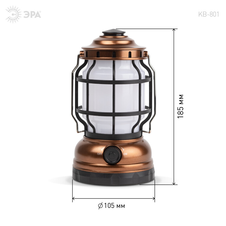 Фонарь кемпинговый светодиодный ЭРА KB-801 "Факел" на батарейках 2 режима (холодный + пламя)