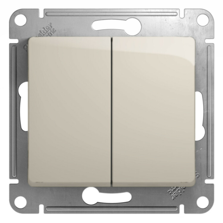 Переключатель 2 клавишный 10А молочный Glossa