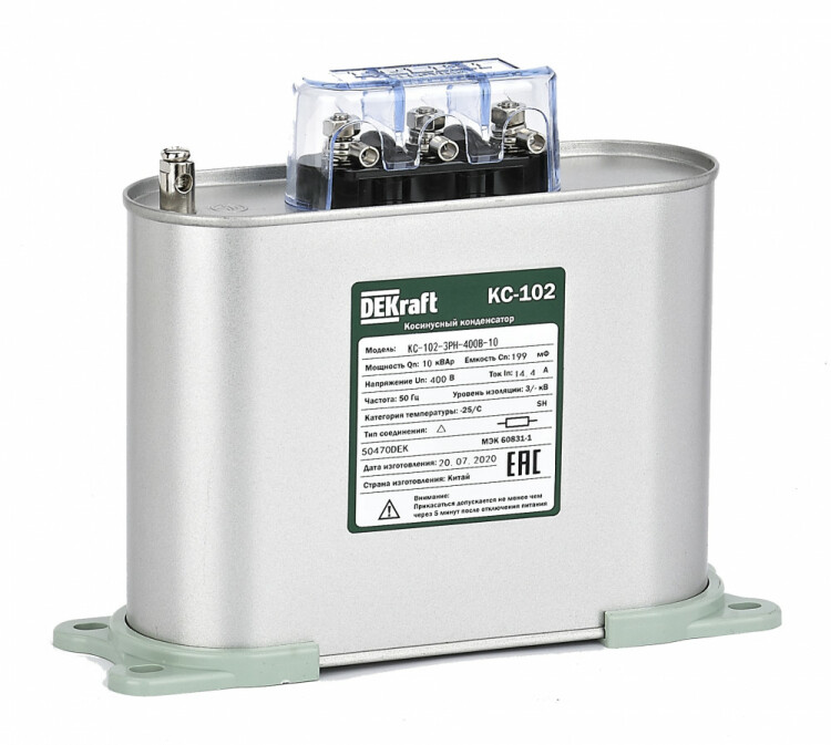 Косинусный конденсатор трехфазный 400В, 10кВАр серии КС-102 DEKraft