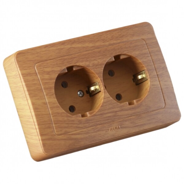 РС16-351-05 Розетка скрытой установки, двухместная, с заземляющим контактом, цвет дуб