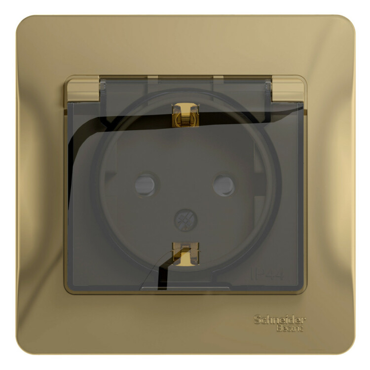 Розетка 2P+E 16А со шторками с крышкой IP44 винт.зажим в сборе титан Glossa