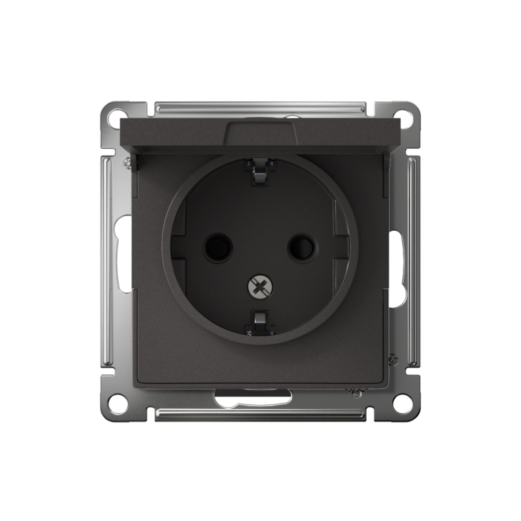 Розетка 2P+E с крышкой со шторками 16А базальт AtlasDesign