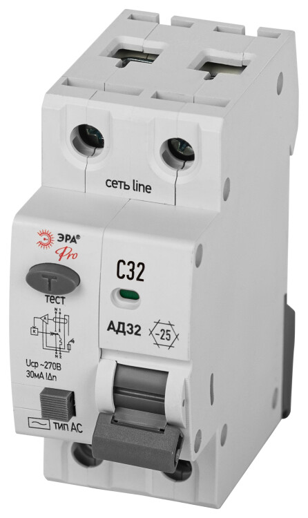АВДТ 4,5кА ЭРА PRO D32E2C32АC30P АД-32 электронное 1P+N C32 30мА тип АC защита 230В