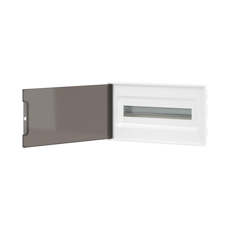 Щиток 18 мод встраиваемый FRAME, белый, с тонированной дверцей, с 2 шинами PEN на 8 и 10 отв.