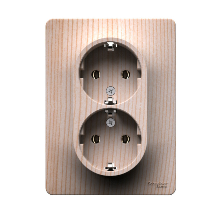 GLOSSA РОЗЕТКА двойная с заземлением, 16А, в сборе, СОСНА