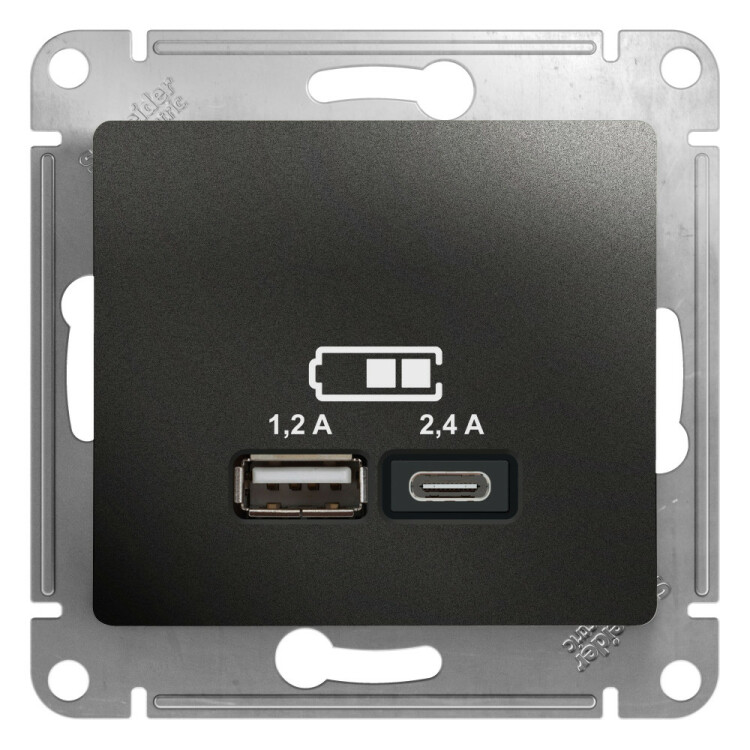 USB РОЗЕТКА A+С, мех, АНТРАЦИТ