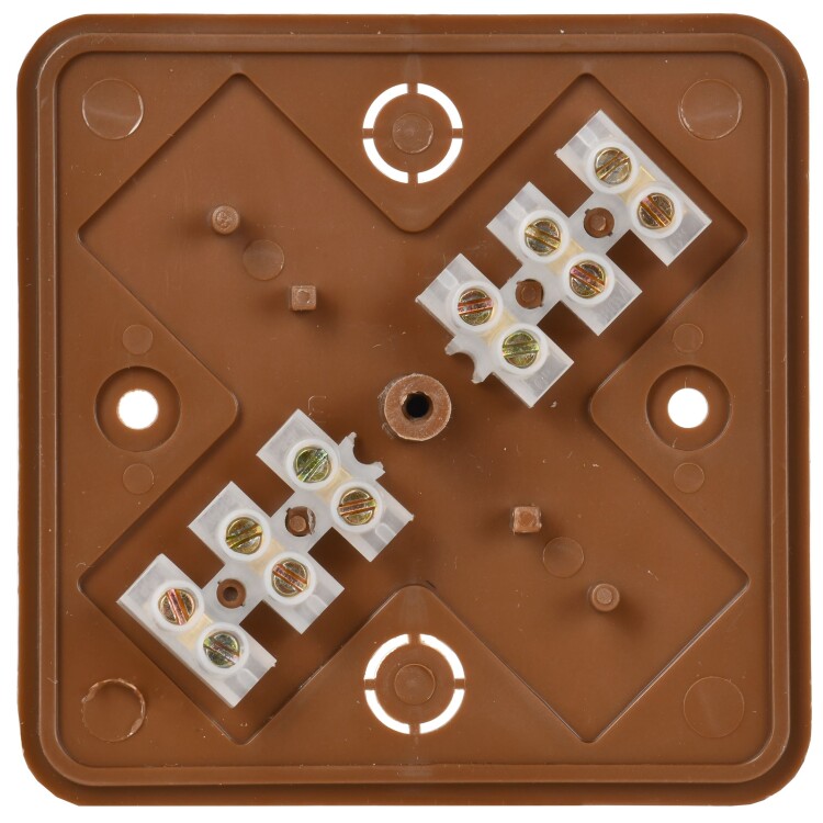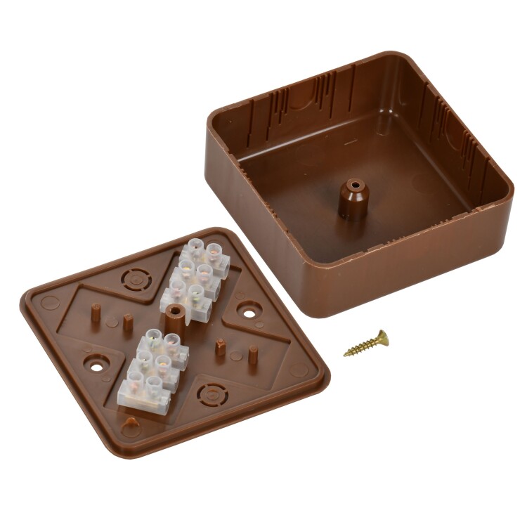 Коробка монтажная распределительная открытой установки 75х75х28 мм дуб (6 клемм 6мм2)