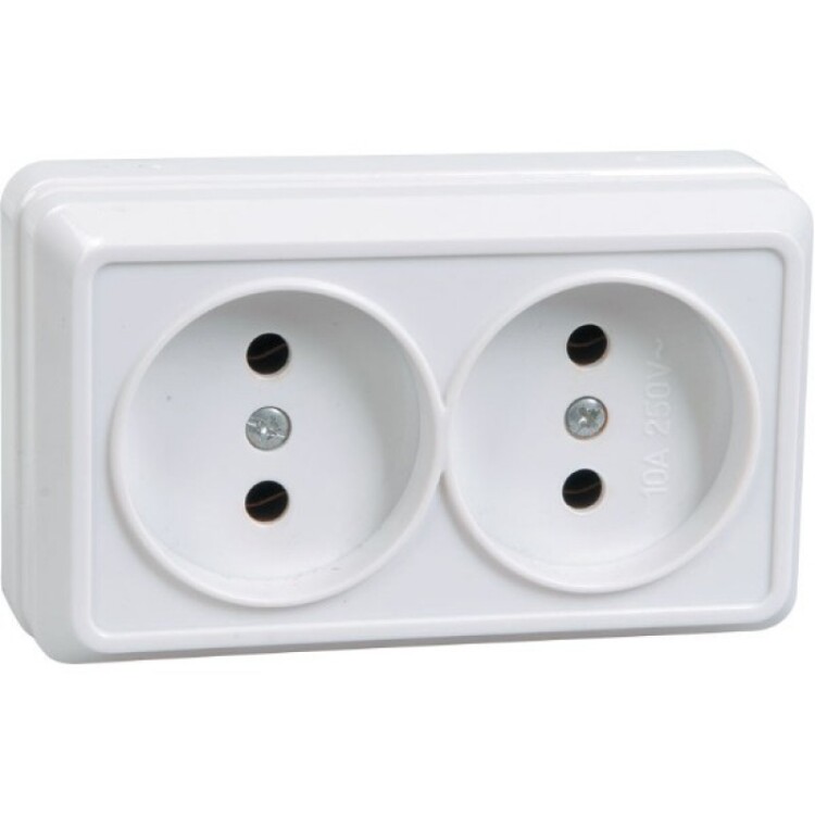 Розетка 2х2P со шторками 10А белый Октава