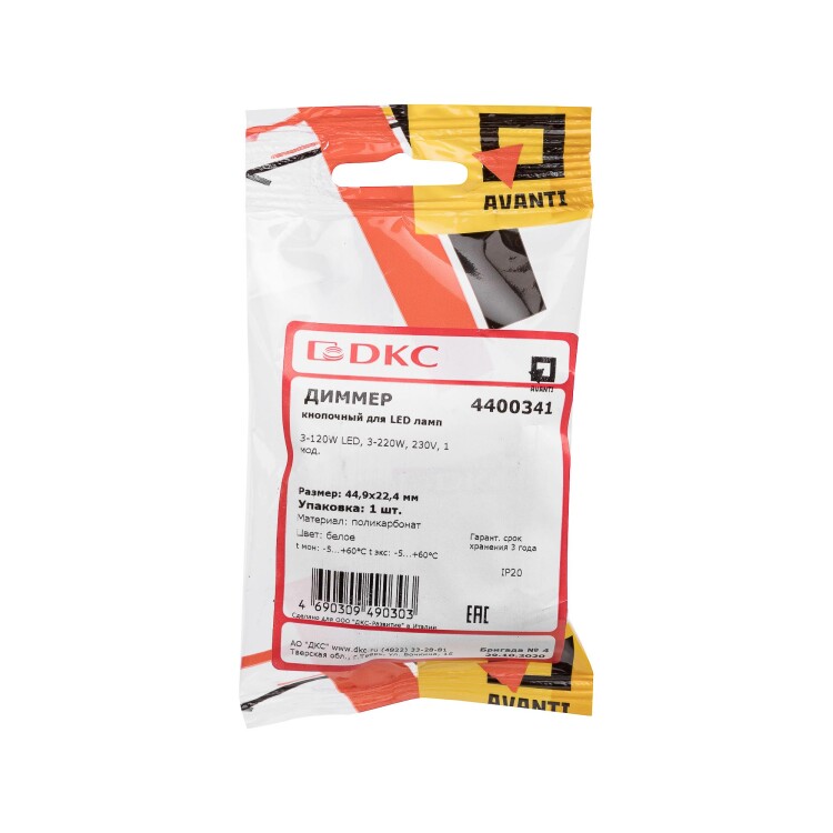 Диммер кнопочный модульный для LED ламп, "Avanti", "Белое облако", 1 модуль