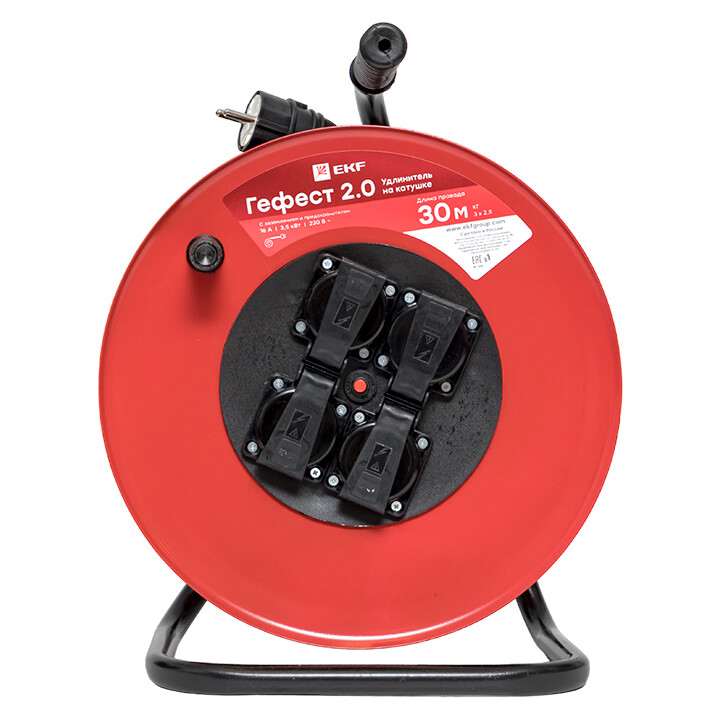 Удлинитель на катушке "Гефест 2.0" 4 гнезда 30м с заземлением и предохранителем КГ 3*2,5 16А/3,5кВт IP44 PROxima