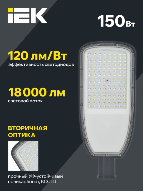 Светильник консольный LED 150Вт 18000Лм 5000К IP65 серый ДКУ 1004-150Ш IEK