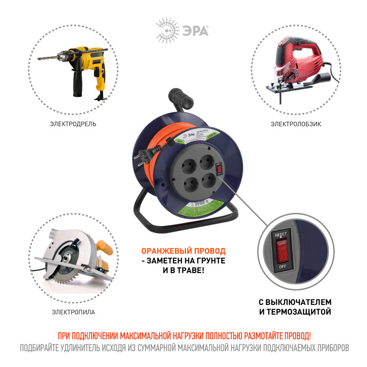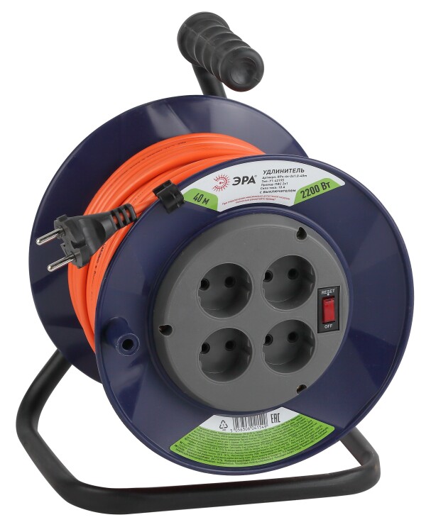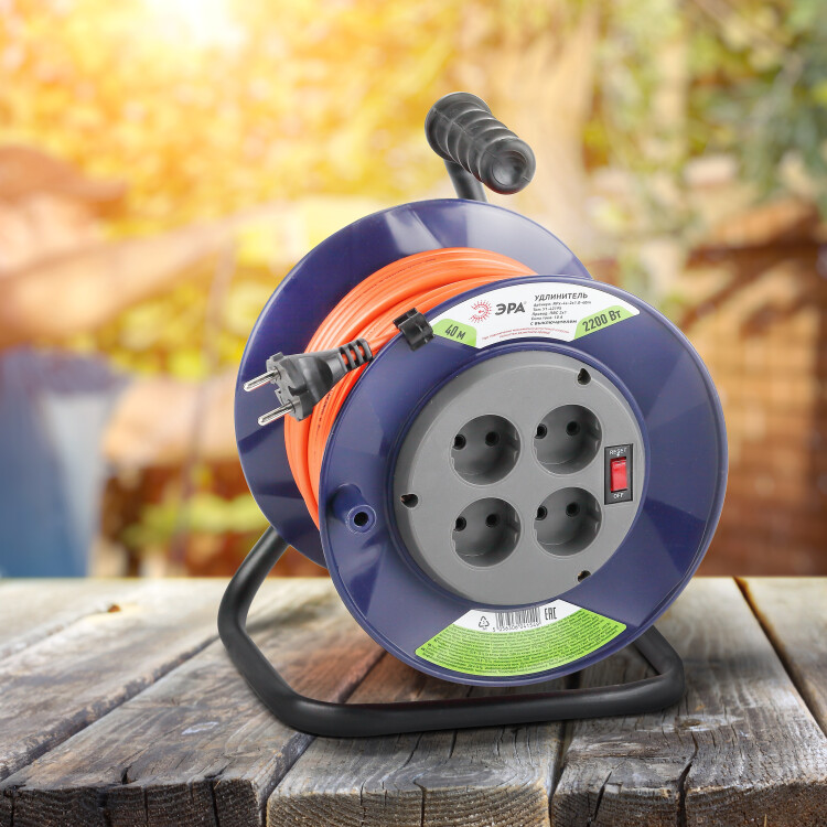 Удлинитель силовой ЭРА RPx-4s-2x1.0-40m на пластиковой катушке без заземления 4 розетки 40м ПВС 2х1мм2