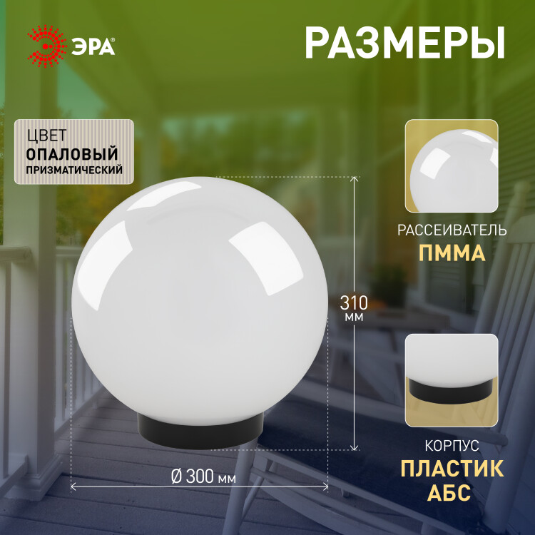 Садово-парковый светильник ЭРА НТУ 02-100-301 шар опаловый призма на опору / кронштейн IP44 Е27 max100Вт d300mm