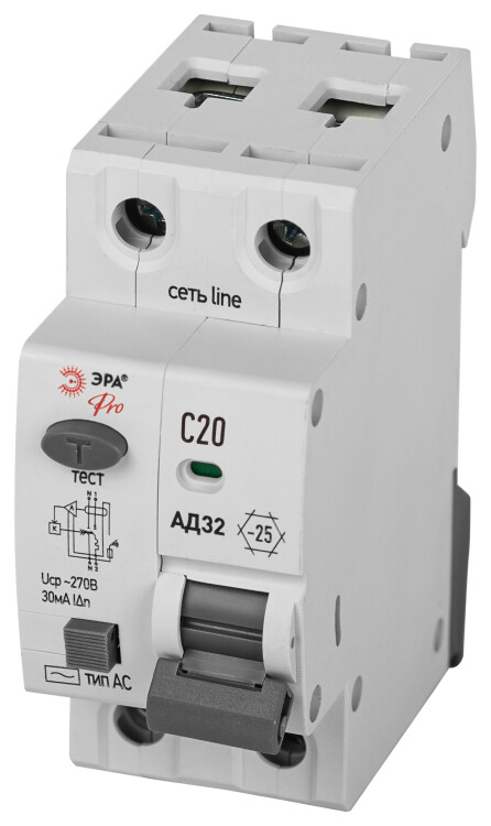 АВДТ 4,5кА ЭРА PRO D32E2C20АC30P АД-32 электронное 1P+N C20 30мА тип АC защита 230В