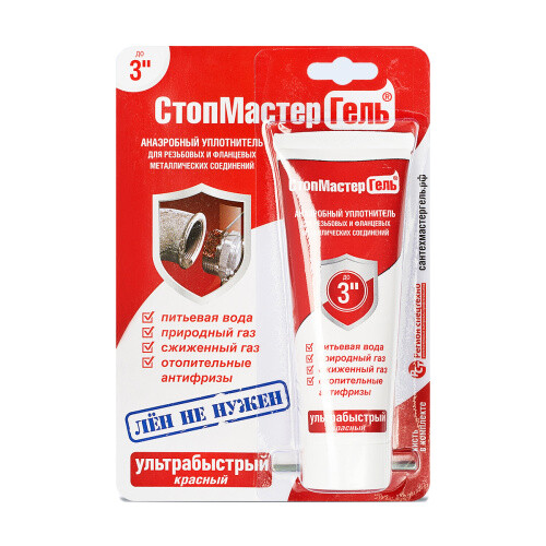 Анаэробный герметик 60г Красный, тюбик (от 1/2",труднораборн.) Сантехмастер