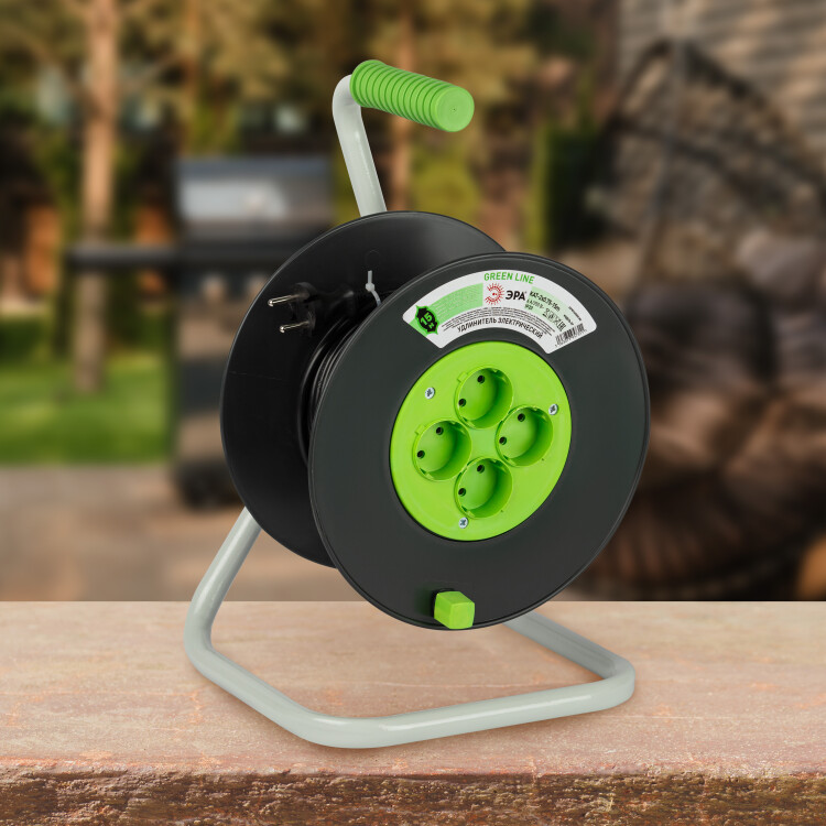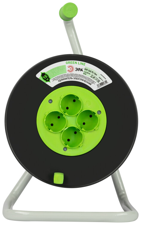 Удлинитель силовой ЭРА GREEN LINE KAT-2x0.75-15m Greenline на катушке пластик 4 розетки без заземления 15м ПВС 2x0.75мм2