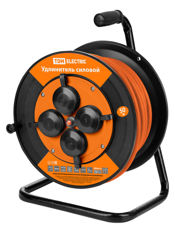 Удлинитель силовой УКз16-004 TDM (IP44 4 места/50м ПВС 3х1,0)