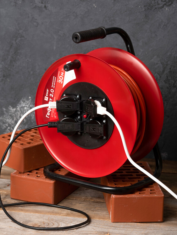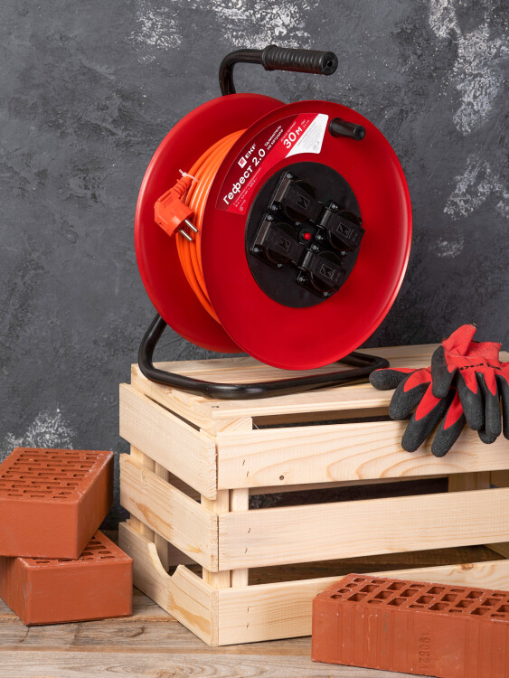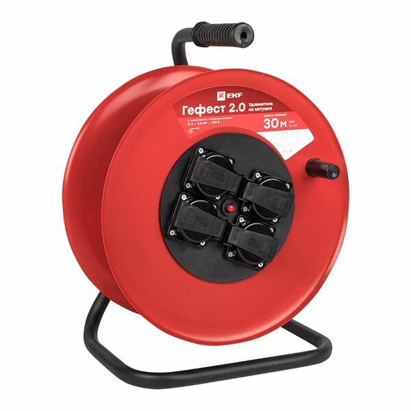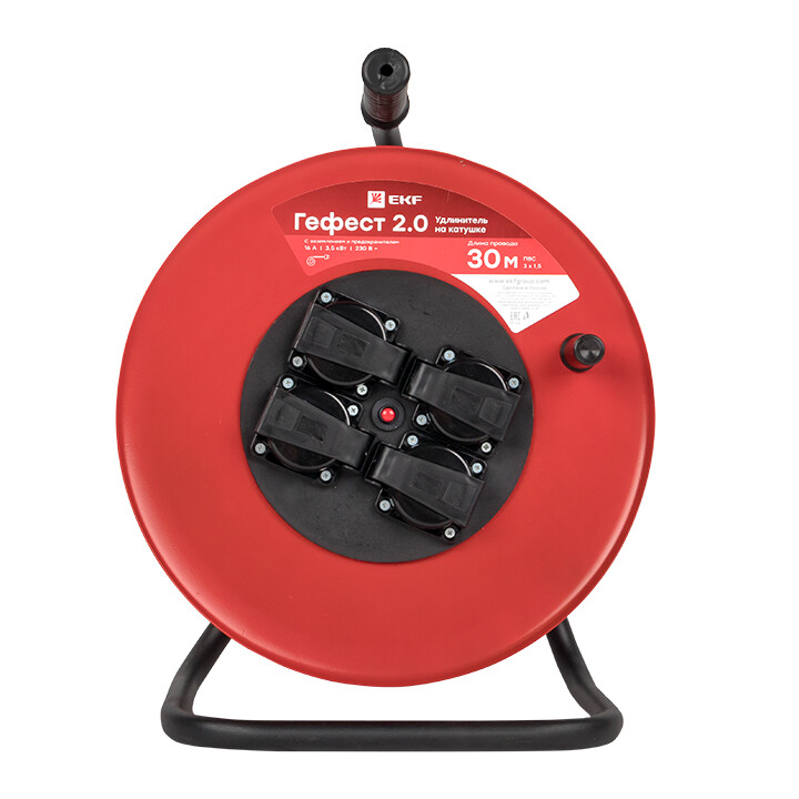 Удлинитель на катушке "Гефест 2.0" 4 гнезда 30м с заземлением и предохранителем ПВС 3*1,5 16А/3,5кВт IP44 PROxima