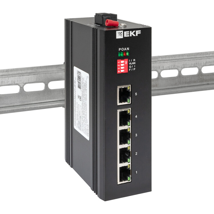 Промышленный неуправляемый коммутатор U-5GT, 5 портов 10/100/1000Base-T(X) RJ45, монтаж на динрейку TSX EKF