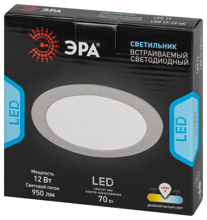 Светильник Downlight симметр. 12Вт 170-265В пластик белый IP40 ЭРА (Энергия света)