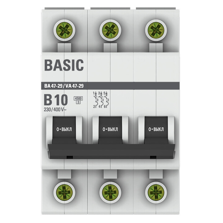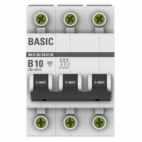 Автомат. выкл. 3-пол. 10А тип B 4,5кА серия ВА 47-29 EKF
