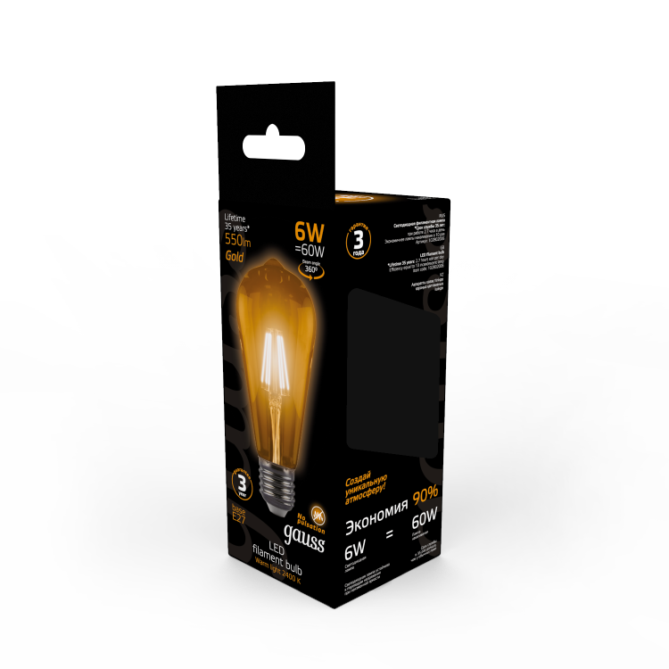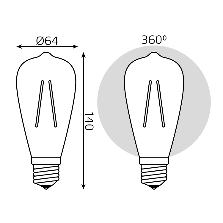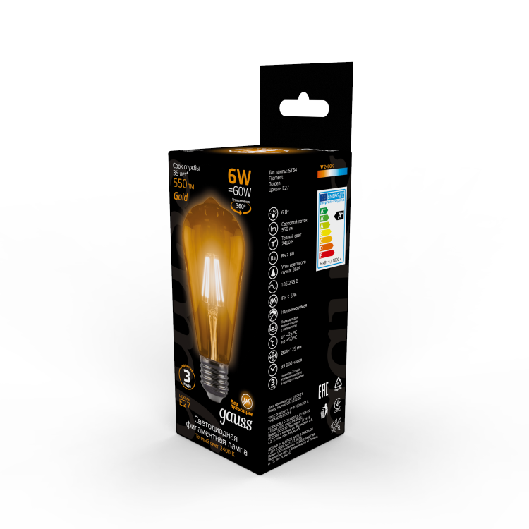 Лампа светодиодная 6 Вт 230В E27 Filament винтажная колба ST64 тёплый белый 2400К