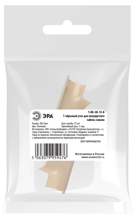 Т-образный угол ЭРА T-KK-30-13-B для полукруглого кабель-канала бежевый 30х13мм 2шт/комплект