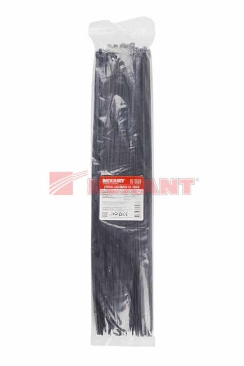 Хомут кабельный нейлон 4,8x500 мм, черный (100 шт/уп)