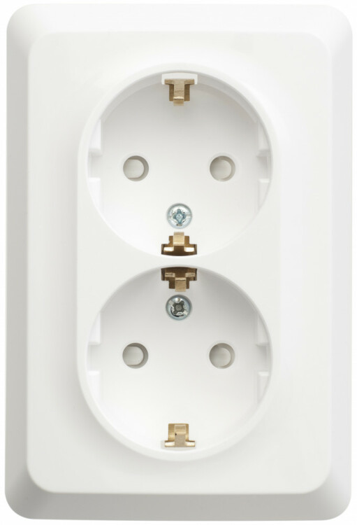 Розетка 2х2P+E со шторками белый Этюд
