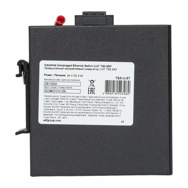 Промышленный неуправляемый коммутатор U-5T, 5 портов 10/100Base-T(X) RJ45, монтаж на динрейку TSX EKF