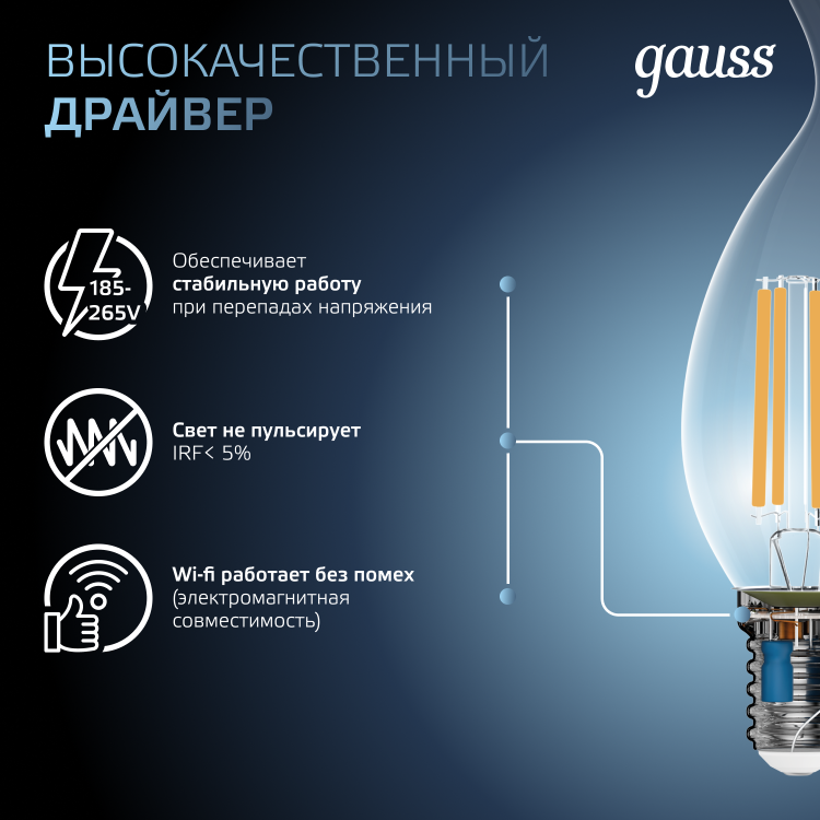 Лампа светодиодная 7 Вт 230В Е14 Filament свеча на ветру, холодный 4100К