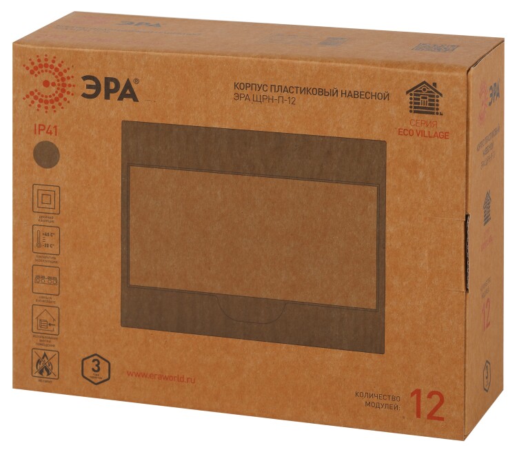 Корпус пластиковый навесной ЭРА ECO VILLAGE ЩРН-П-12 IP41 дуб