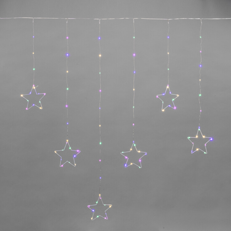 Гирлянда Светодиодный занавес из росы с фигурами Звезд МУЛЬТИКОЛОР IP20 USB + пульт управления NEON-NIGHT