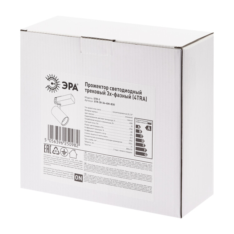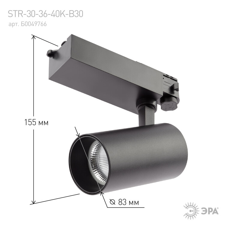 Трековый светильник трехфазный ЭРА SТR-30-36-40K-B30 узкий луч 4000K черный